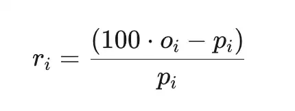 总超额收益 (ri) 是相对于成本的回报(含平台费用前),其中 pi 为美分价格,oi∈{0,1} 为结果。
