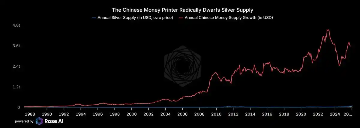 如果你是一个富裕的中国家庭,你会想把更多钱放在一个有着数万亿隐性损失的僵尸银行体系里吗?还是愿意在价格高位买入实物白银,并承受 30% 回撤的风险?当你的另一个选择是存入技术上已资不抵债的银行时,答案显而易见。