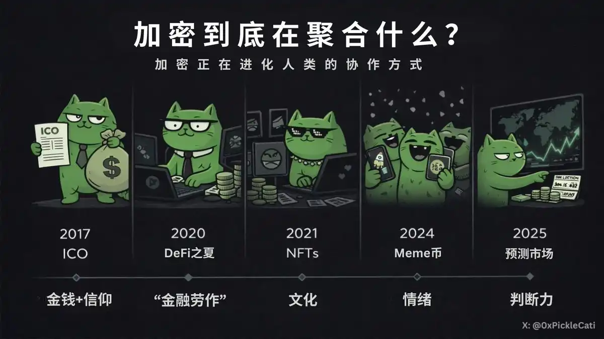 你会发现,每一次加密领域的破圈,本质上都是用一种新方式把人聚集起来。每个阶段带来的不只是更多用户,更是一个让人留下的新理由——这才是关键所在。