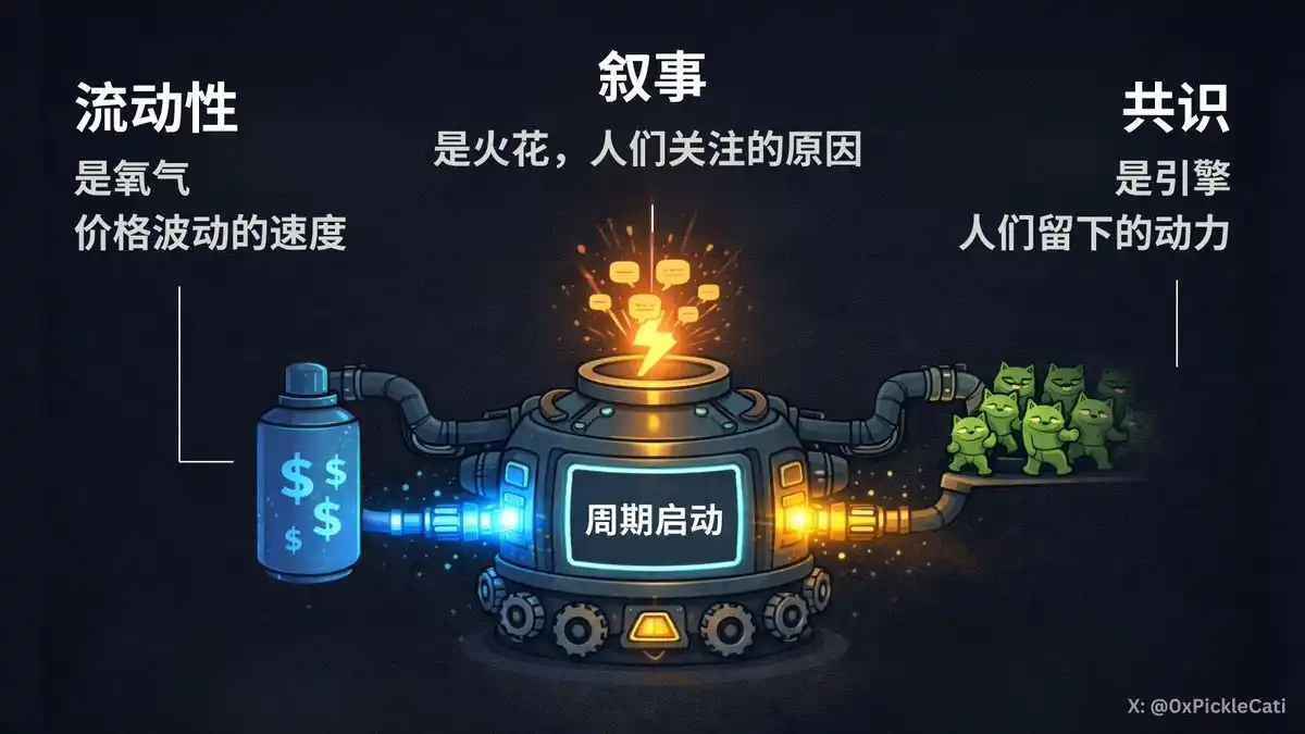 · 流动性(宏观风险偏好、美元流动性、杠杆能力等)如同注入市场的氧气,它决定了价格能移动多快。