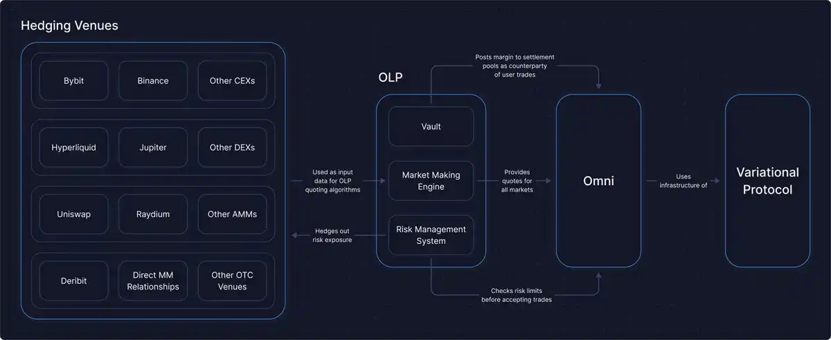 Omni 流动性提供者(OLP)是一个垂直整合的做市商,作为 Omni 上所有交易的对手方。