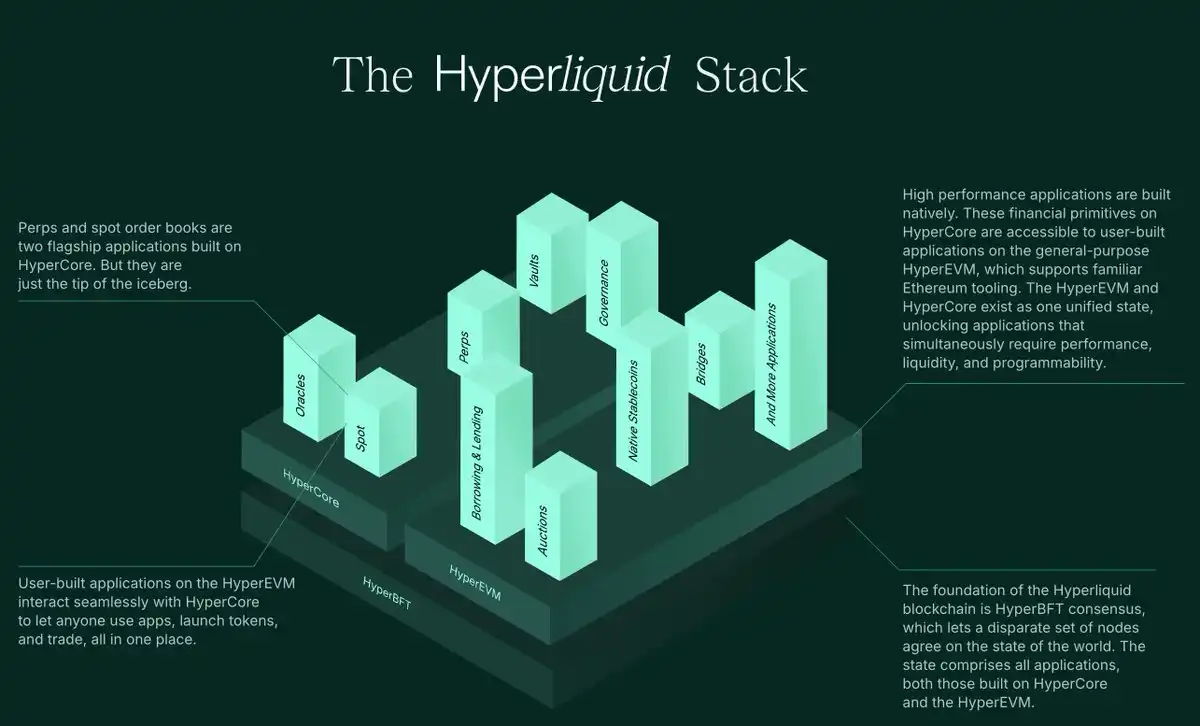 HyperCore:原生执行层,管理交易平台的关键功能。它作为一个超高效引擎运行,能够支持深度订单簿和所需的流动性。