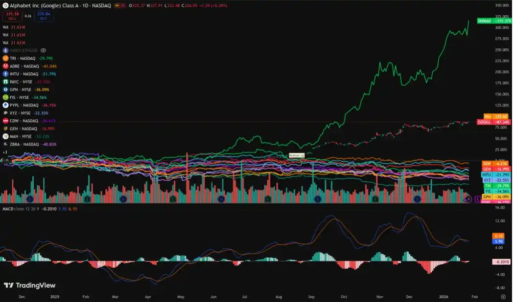我们将系统梳理 ETH 与 AI 应用深度融合 所带来的多重价值,包括其对 以太坊盈利能力的提升、对 RWA(现实世界资产)上链的推动,以及对 整体链上活跃度的拉动作用;并将其与传统软件行业的现实形成对照——在后者中,真正因 AI 明确受益的公司屈指可数,而更多企业反而正被 AI 冲击甚至取代。