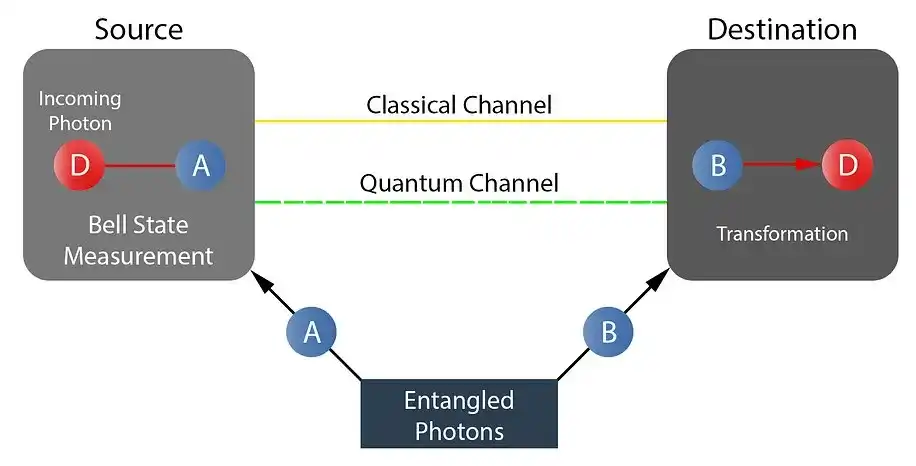 量子隐形传态(quantum teleportation)则引入了一种完全不同的原语:状态可以被转移,但在转移过程中无法被复制,并且会在转移的那一刻被「消耗」掉。换言之,不可复制性不再完全依赖软件与协议约束,而成为物理底层本身的属性。