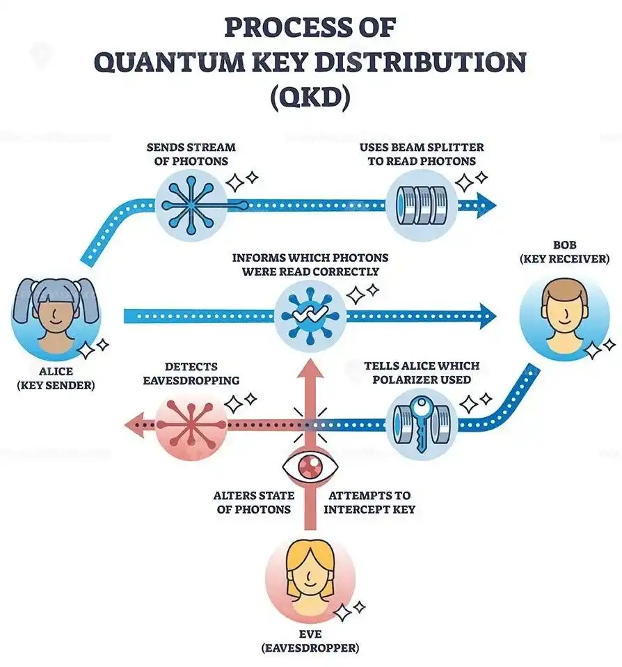 某些量子特性无法被复制,也无法在不产生扰动的情况下被观测。当这些特性被用于生成加密密钥或验证通信信道时,拦截行为就不再是「无声的」。一旦有人试图窃听,观测本身就会留下可被检测的痕迹。