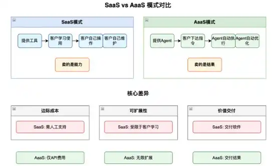 区别在于:SaaS 卖的是「能力」, AaaS 卖的是「结果」。