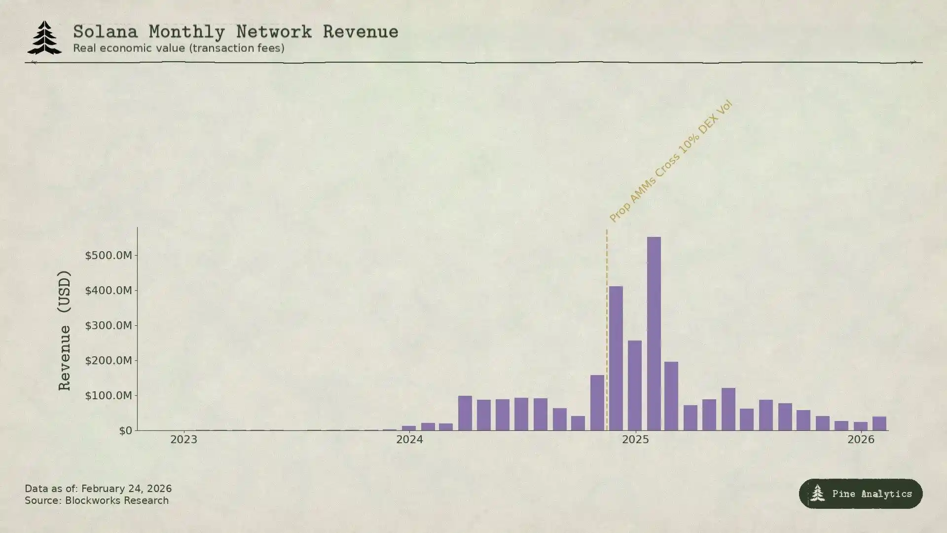 Solana 几乎肯定能在下一个周期,创下链上活跃度的新高——它的生态够深、开发者够多、基础设施也够成熟,但手续费收入未必会跟着涨。2024 年末到 2025 年初的 memecoin 狂热,对 Solana 来说,就相当于比特币的「SegWit 时刻」:一次靠新需求撑起的手续费高峰,之后迅速就被创新压缩。