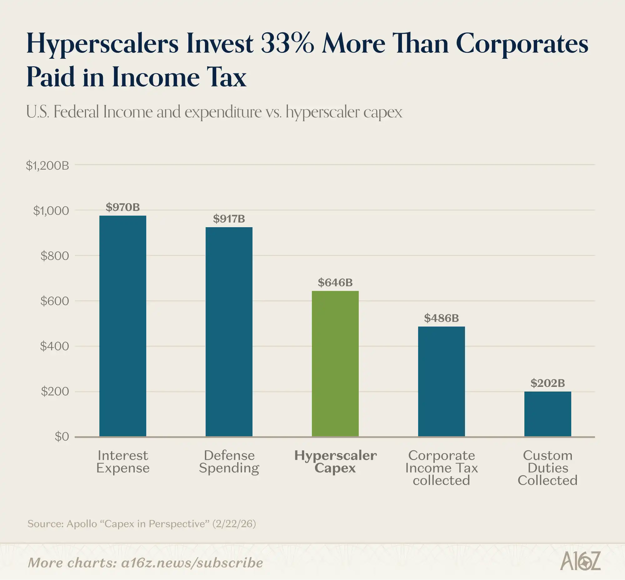 资本支出约比美国企业所得税总收入高出 33%,约为关税总额的 3 倍: