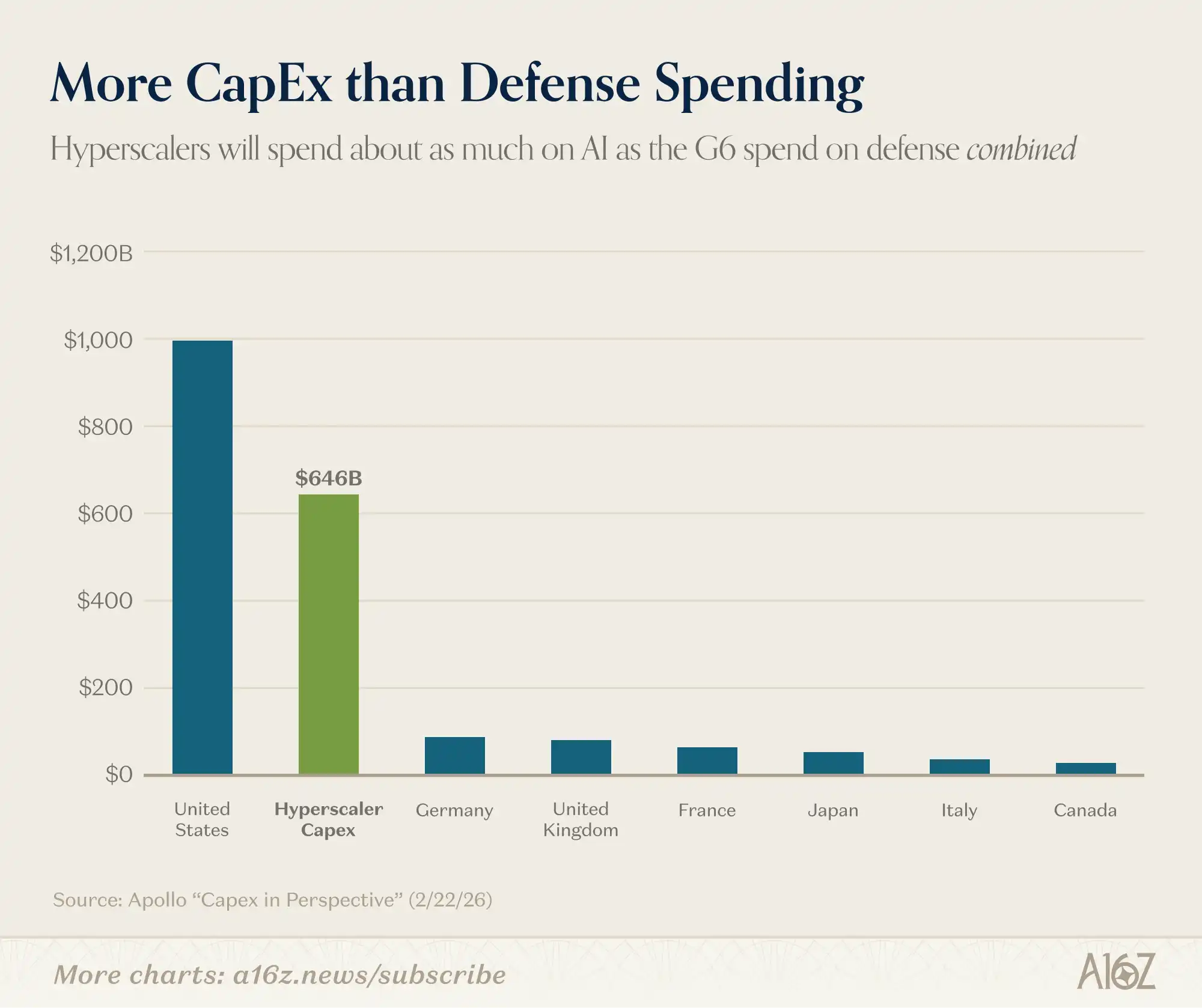 资本支出约为非美 G7 任一成员国军事预算总额的 6 倍: