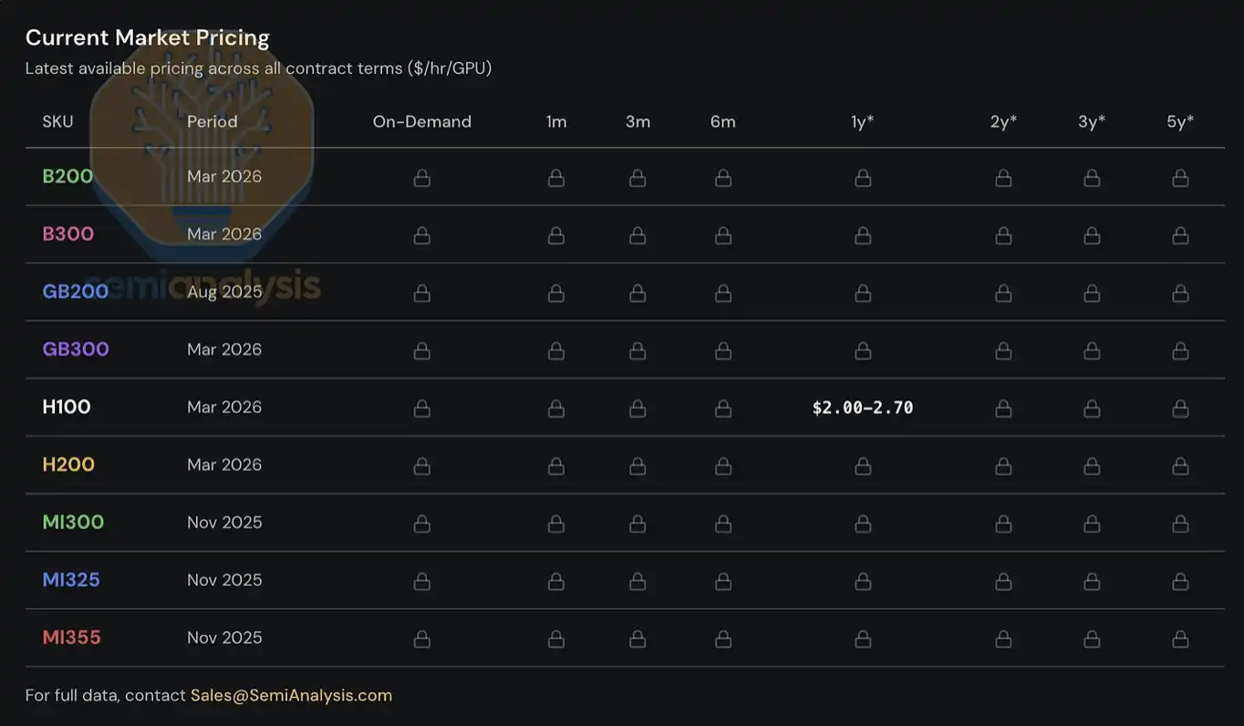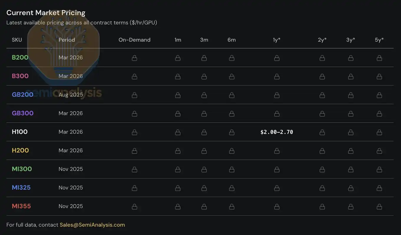 在 SemiAnalysis,我们长期深度跟踪 Neocloud 与超大规模云生态中的各类趋势与关键议题,其中就包括 GPU 租赁价格。这一能力,来源于我们在 ClusterMAX、InferenceX 以及 AI 云总拥有成本(TCO)等项目中的持续研究与实践。