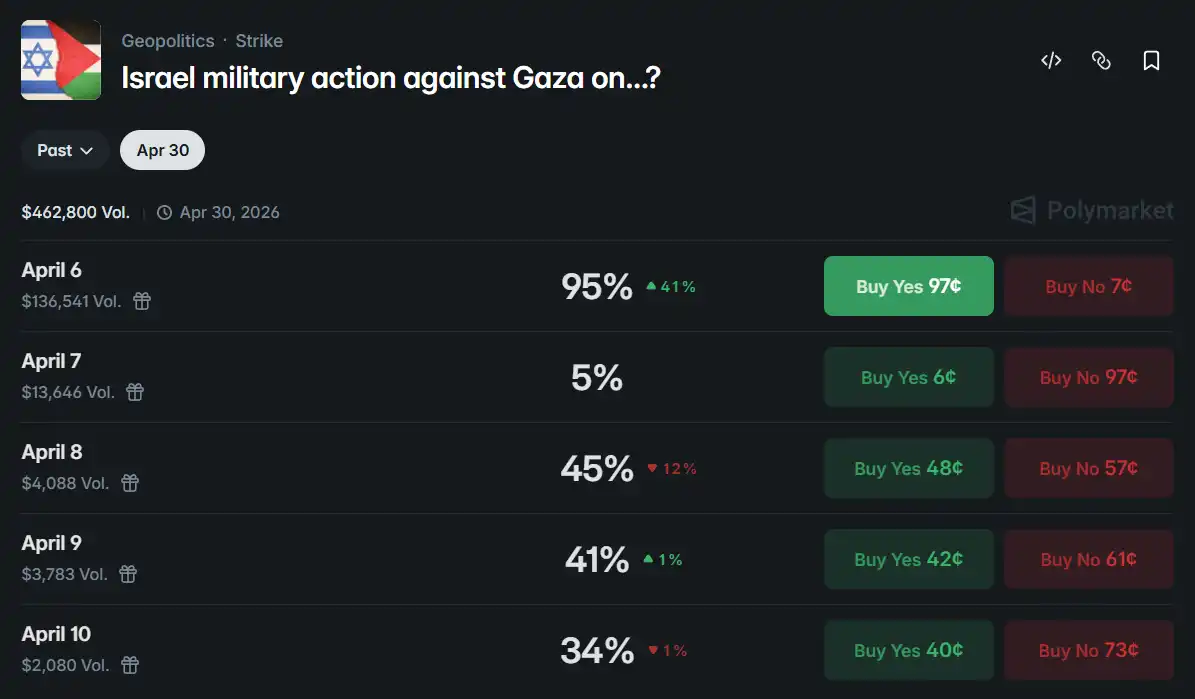 当时,预测市场对「美伊于 4 月 7 日前达成停火」的概率定价为 4%。