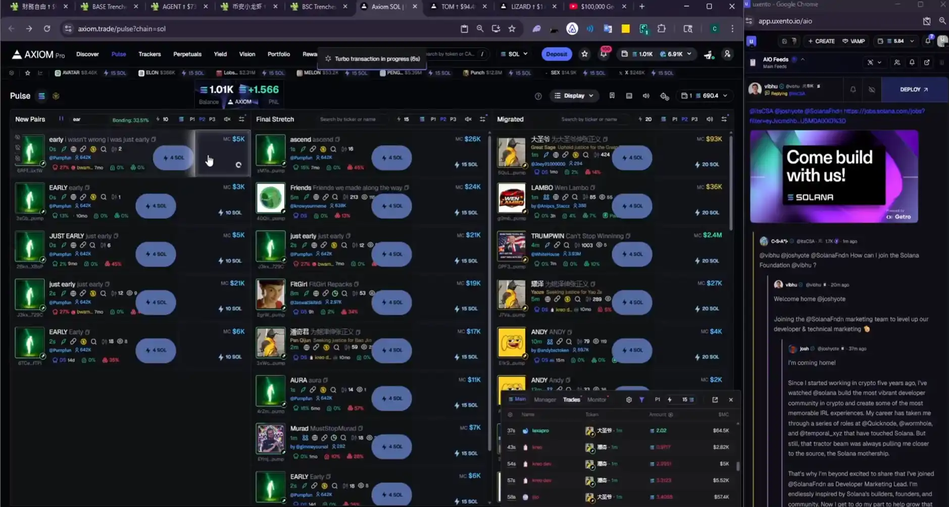 强者也不分中英文,clukz 并不只是在 Solana 上如鱼得水。在视频中,他秒买了来自何一推文的「futiure」以及币安周边的「币安木鱼」,这需要对中文 meme 圈的叙事角度有着深刻的理解。