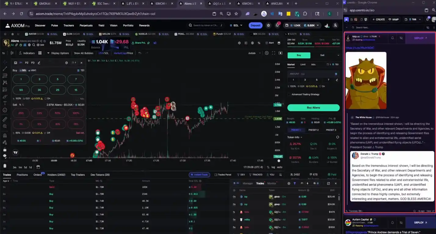 - 你需要锻炼将这些动态关联到 meme 币上的敏锐嗅觉,顶尖选手的反应只有区区几秒钟