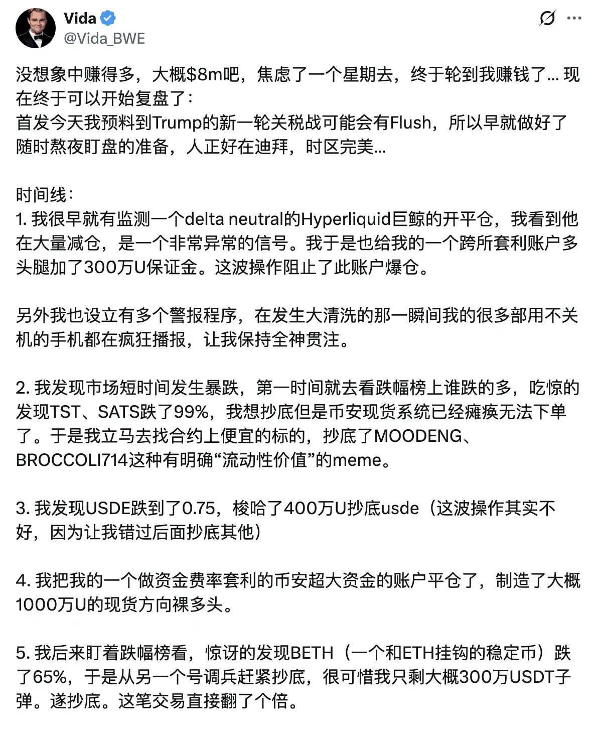 Vida(@Vida_BWE)直接披露一夜盈利大約在 800 萬美元左右。