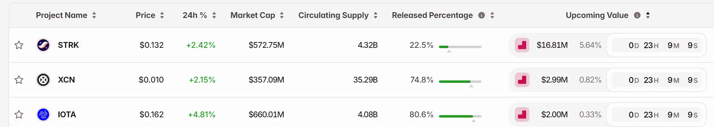 每日市場整體資金熱度(根據資金費率反映)與代幣解鎖