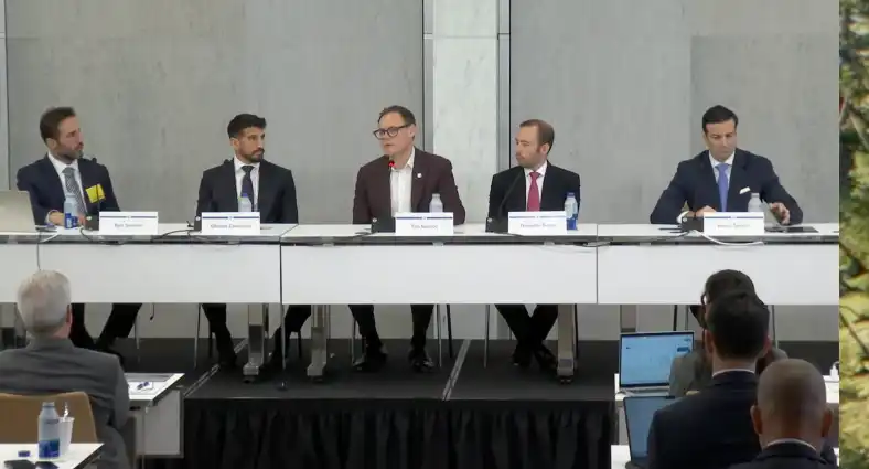 從左至右分別是 Jito Labs 的首席法務官麗貝卡·雷蒂格、Chainlink 的聯合創始人謝爾蓋·納札夫邁克爾·肖洛夫、紐約梅隆銀行的資金服務與存託憑證全球主管詹妮弗·巴克