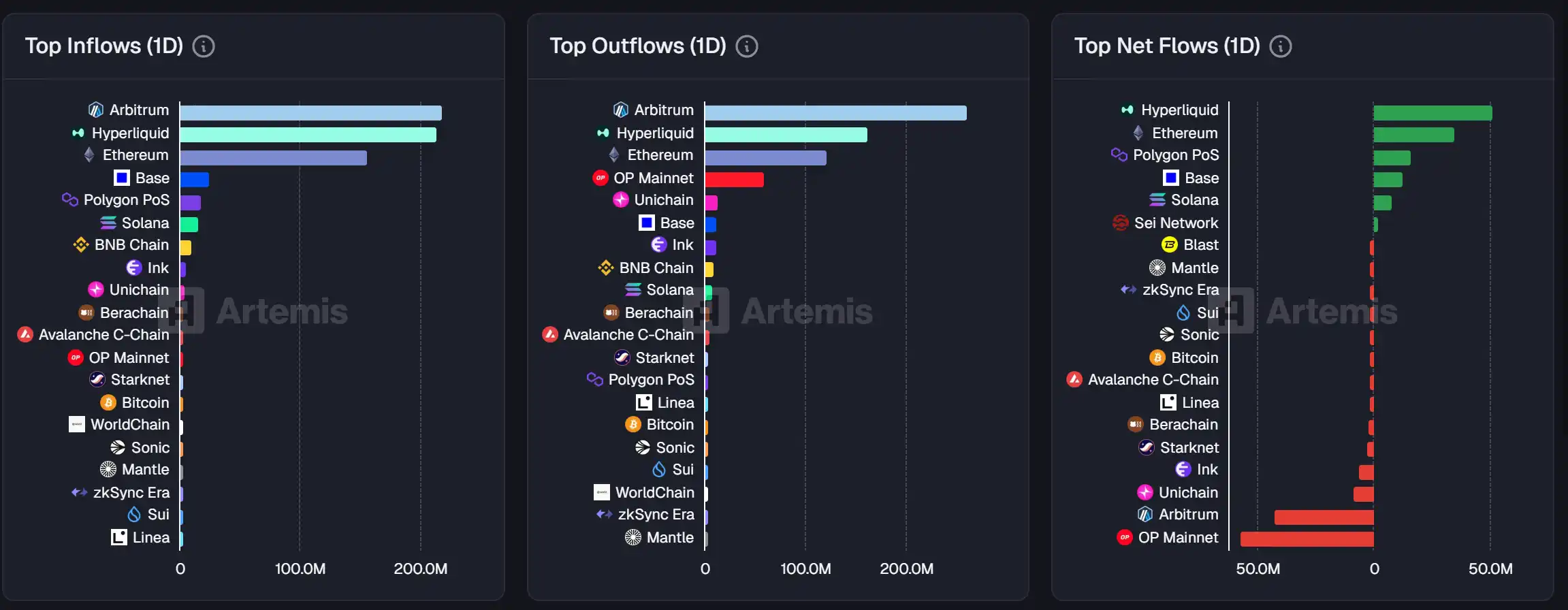 1.鏈上資金:本日51.1M美元流入Hyperliquid;56.9M美元流出OP Mainnet 2.最大漲跌幅:$BBT、$SAROS 3.Top新聞:x402協議代幣PING市值突破3,200萬美元,24小時漲幅802%