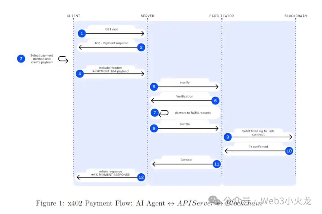 協議的核心突破>將付款標準化為機器可讀的抽象機器。當 AI 助理需要呼叫付費 API 或完成交易時,無需依賴傳統的人類支付流程——註冊帳號、綁定銀行卡或等待人工審核。取而代之的是,透過 HTTP 請求直接嵌入支付指令,利用 USDC 等穩定幣實現瞬間結算。 此技術架構展現出多重優勢:極簡整合使開發者能夠快速部署支付功能;鏈無關設計支援 Base、Solana 等多區塊鏈環境;近乎零手續費讓微支付場景變得可行至,結算時間縮短至 200 毫秒等級。