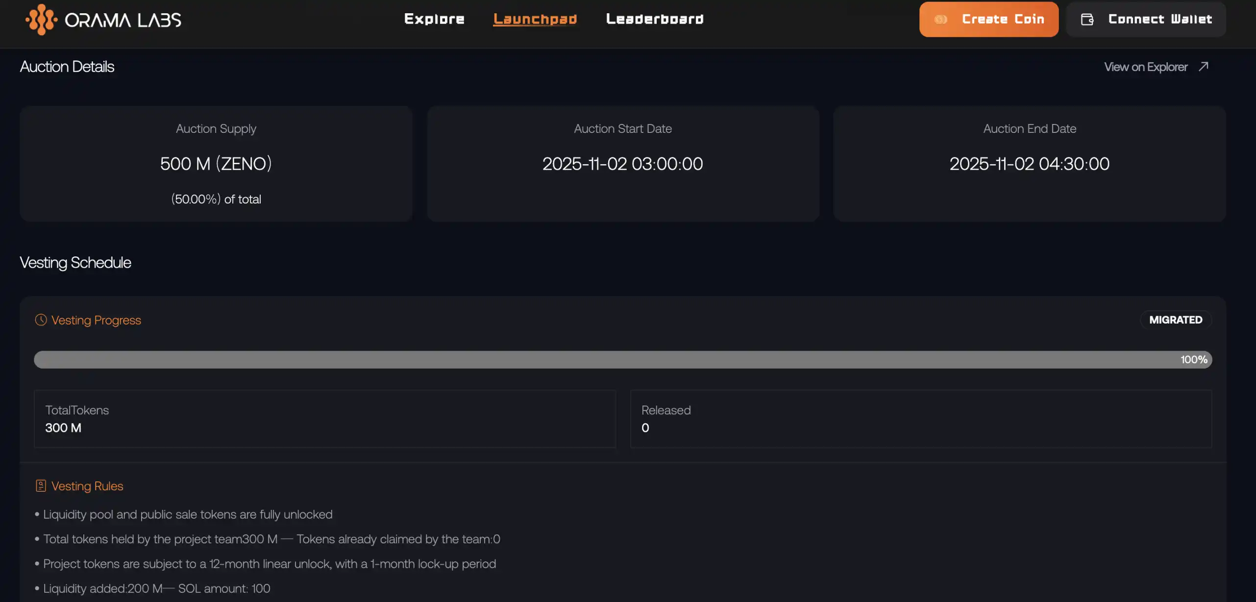 OramaPad 的第一個項目採用了 Crown 模式,即項目需要擁有完善的商業邏輯體系和 / 或強大的 Web2 領域技術開發能力,並且其產品必須具有很強的實用性,Orama 將其稱為 OCM)。與單純的 meme 發行不同,Orama 本質上是為具備成熟商業模式與技術能力的 Web2 企業或團隊提供了可複製的鏈上轉型路徑,而第一個吃螃蟹的 Zeno,同樣來頭不小。
