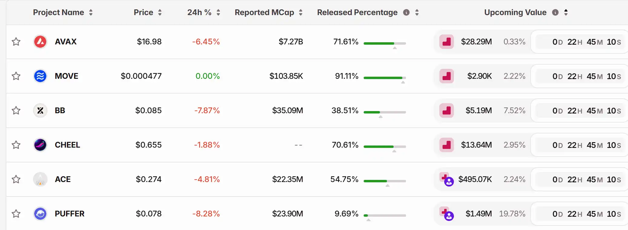 每日市場整體資金熱度(根據資金費率反映)與代幣解鎖